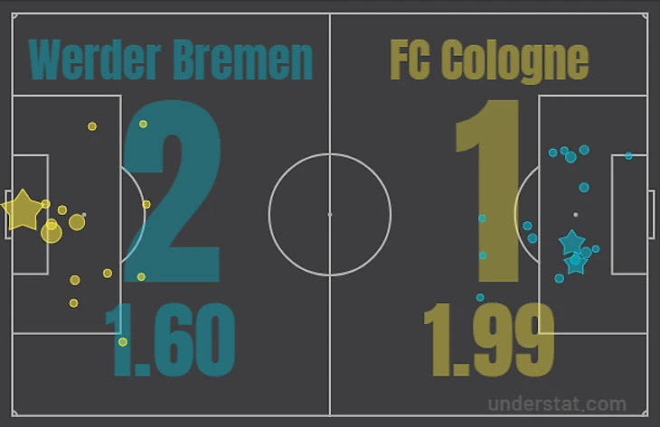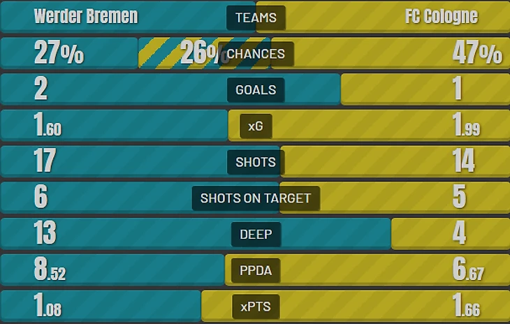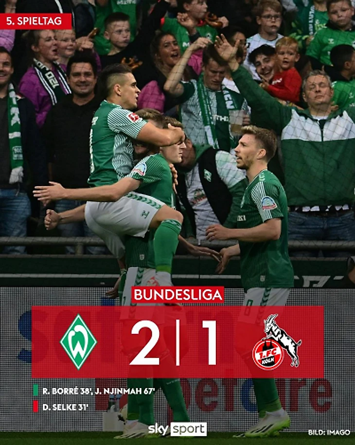И снова у нас волевая победа под занавес тура. Футболисты «Кёльна» вышли вперед в середине первого тайма, но и пропустили еще до перерыва. Сценарий сразу нескольких матчей тура. Наставник бременцев здорово угадал с заменой – Ньинмах удвоил преимущество хозяев через минуту после появления на поле. Спасти хотя бы ничью гости не сумели. Как следствие, «Козлы» потерпели уже четвертое поражение в сезоне и балансирует в зоне вылета, «Вердер» набрал шесть очков и стал десятым.