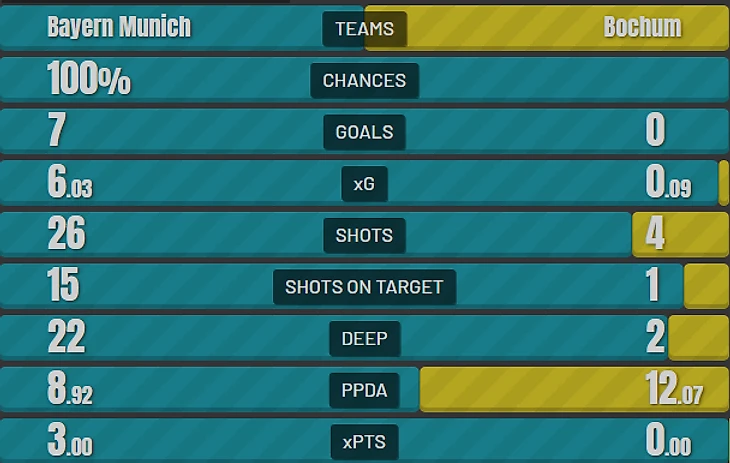 Мюнхенцы хорошенько улучшили себе статистику, забив сопернику семь голов, оставив свои ворота сухими. По хорошему это напоминало избиение. Настоящее голевое шоу или даже мастер-класс устроил Харри Кейн, который оформил хет-трик и добавил в свой актив два ассиста. Ордец и компания (Манкурт вышел в основе и провел на поле весь матч) прервали трехматчевую беспроигрышную серию, а «Бавария» вернулась на вершину Бундеслиги, на одно очко опережая «Штутгарт».