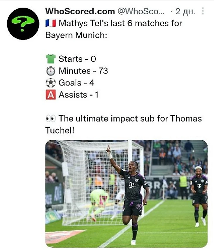 Тель приложил руку к восьми голам мюнхенцев в этом сезоне.