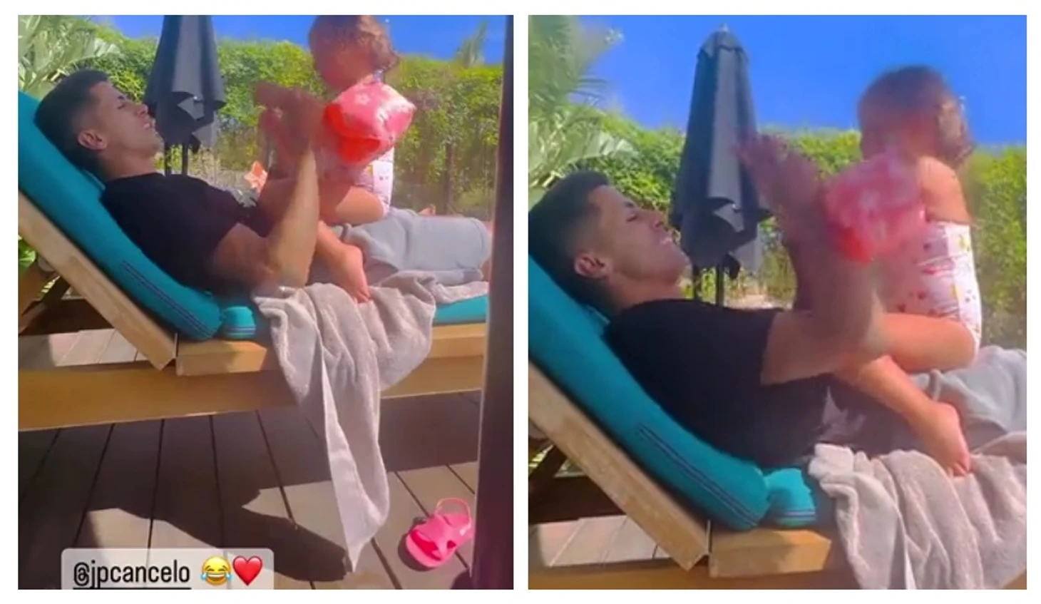В соцсетях появилось видео, на котором новичок «Барсы» Жоауа Канселу играет со своей дочкой и учит ее, как правильно болеть за новый клуб папы.
