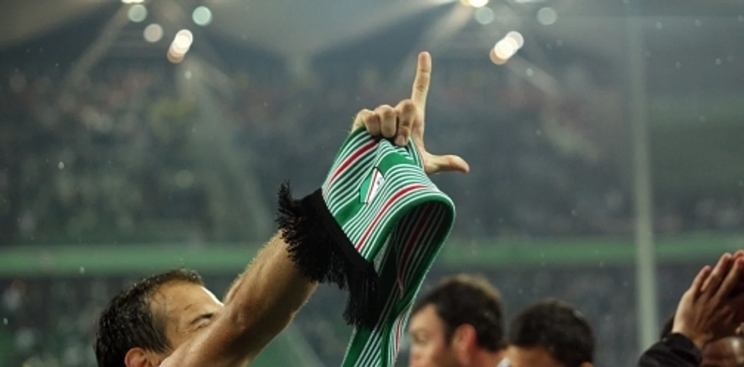 2013 год. Хорватский футболист «Легии» Ивица Врдоляк демонстрирует «эльку» фанатской трибуне после победного матча.