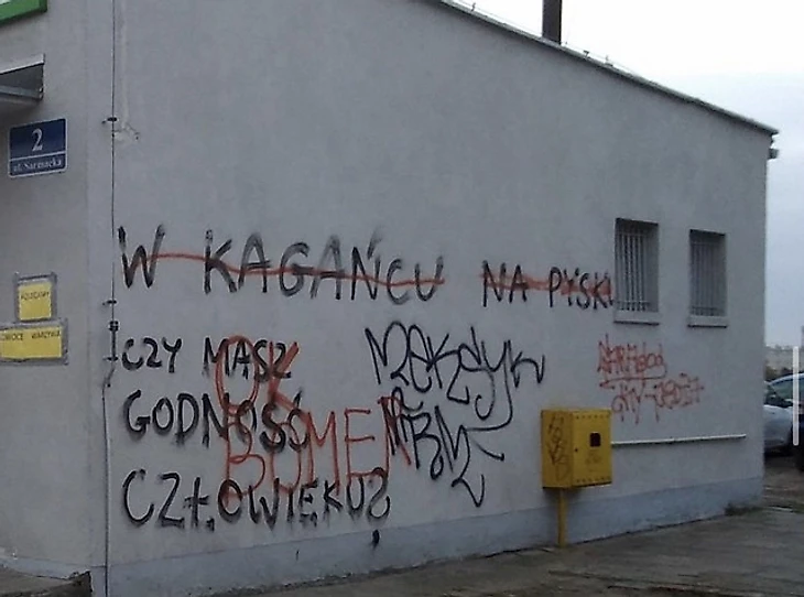 Справа от рисунка на баннере была подпись, которую фривольно можно перевести как «Мораль сей басни такова – не нарисуешь в Щецине ты ничего!» (последнее слово можете заменить на зарифмованную матную версию).