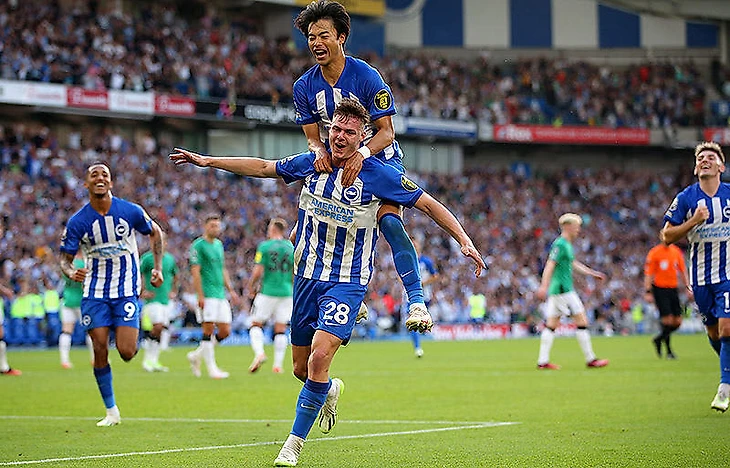 В прошлом сезоне звездами там стали Мойзес Кайседо и Алексис Мак Аллистер. А сейчас предрекаем успех Эвану Фергюсону и выход на новый уровень Каору Митоме. Имя Митомы уже почти год как на слуху. Начиная с октября 2022 года он набирал результативные баллы в АПЛ, но сейчас становится полноценной звездой лиги. Со своим скоростным дриблингом японец – лучший в текущем чемпионате по продвигающим рывкам с мячом и №1 в топ-5 лиг Европы по действиям, ведущим к голу. Разрывает фланг, чувствует себя лидером «Брайтона»!