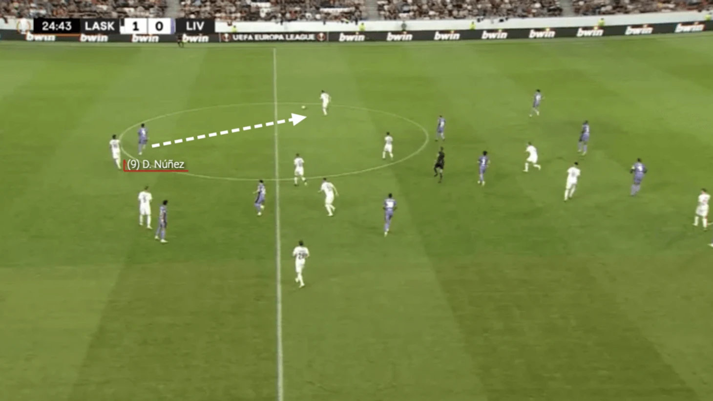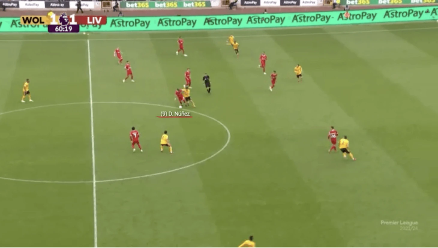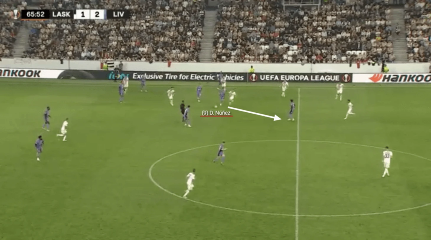 Это был Нуньес, который опускался глубоко, чтобы завладеть мячом, что он не так часто делал после своего появления в команде.
