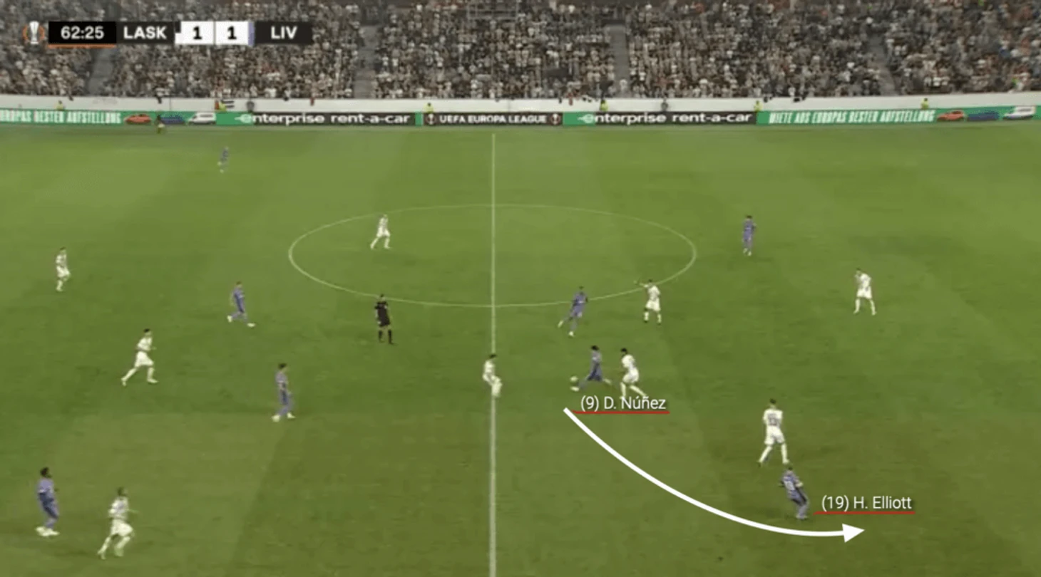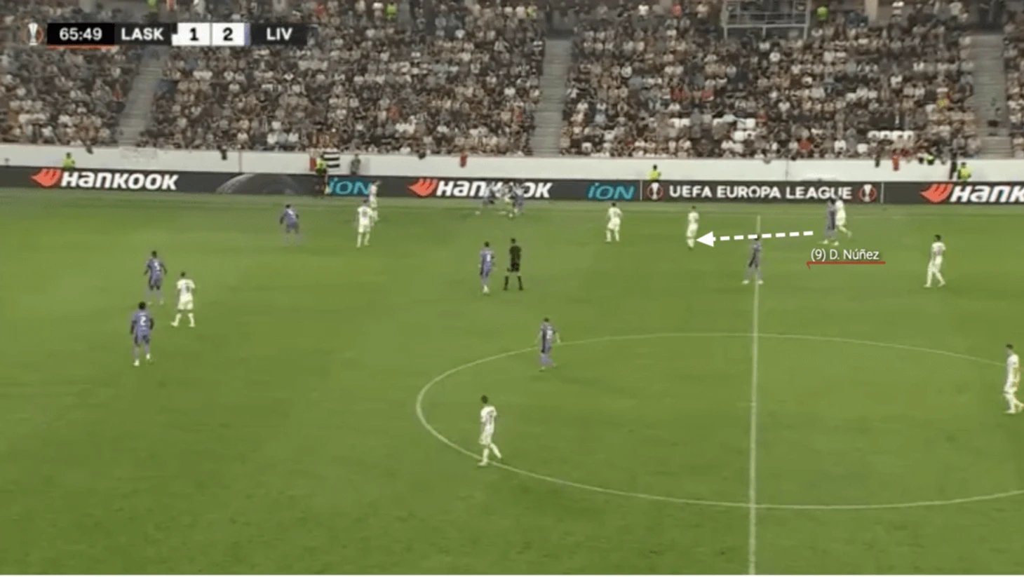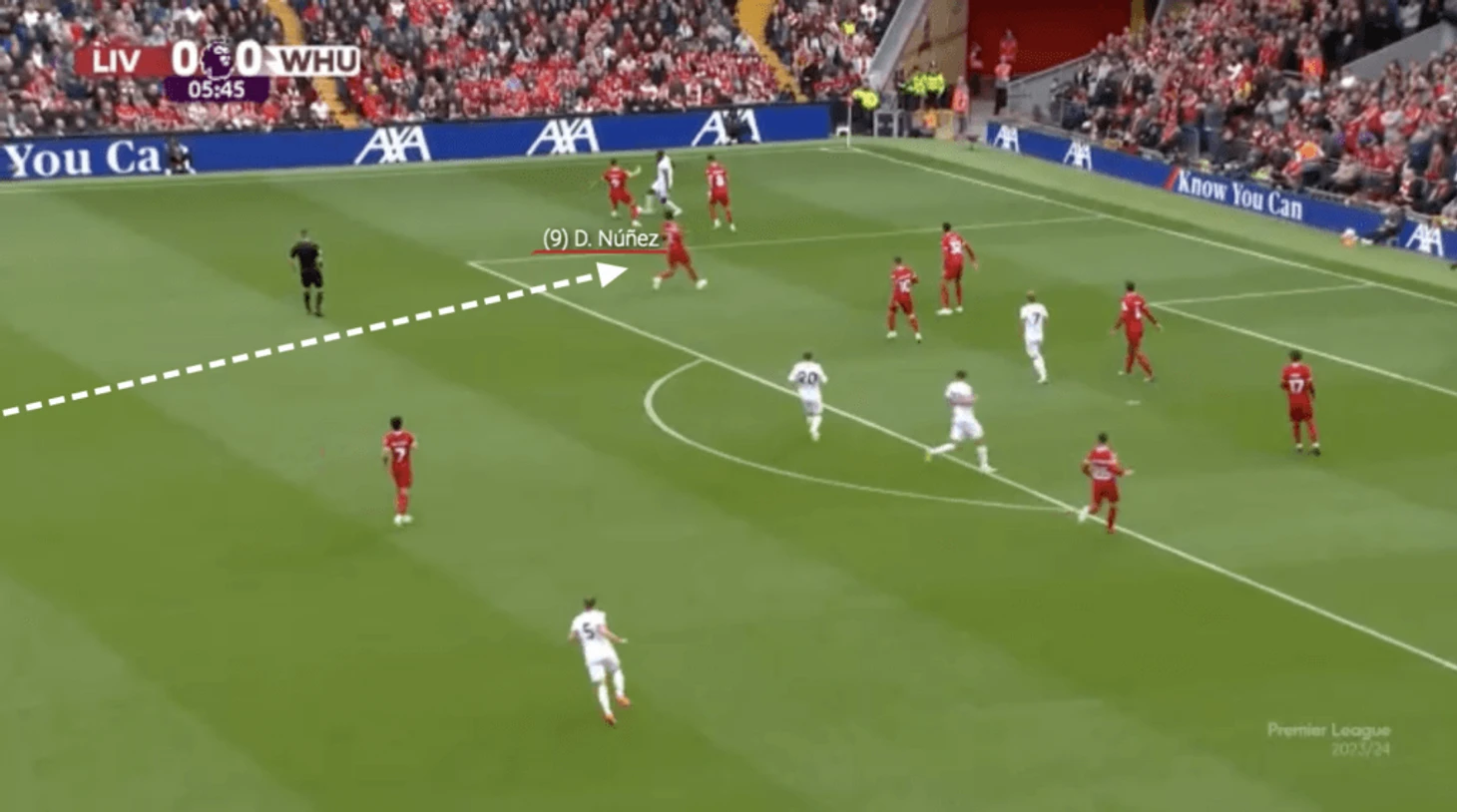 Это был Нуньес, который опускался глубоко, чтобы завладеть мячом, что он не так часто делал после своего появления в команде.