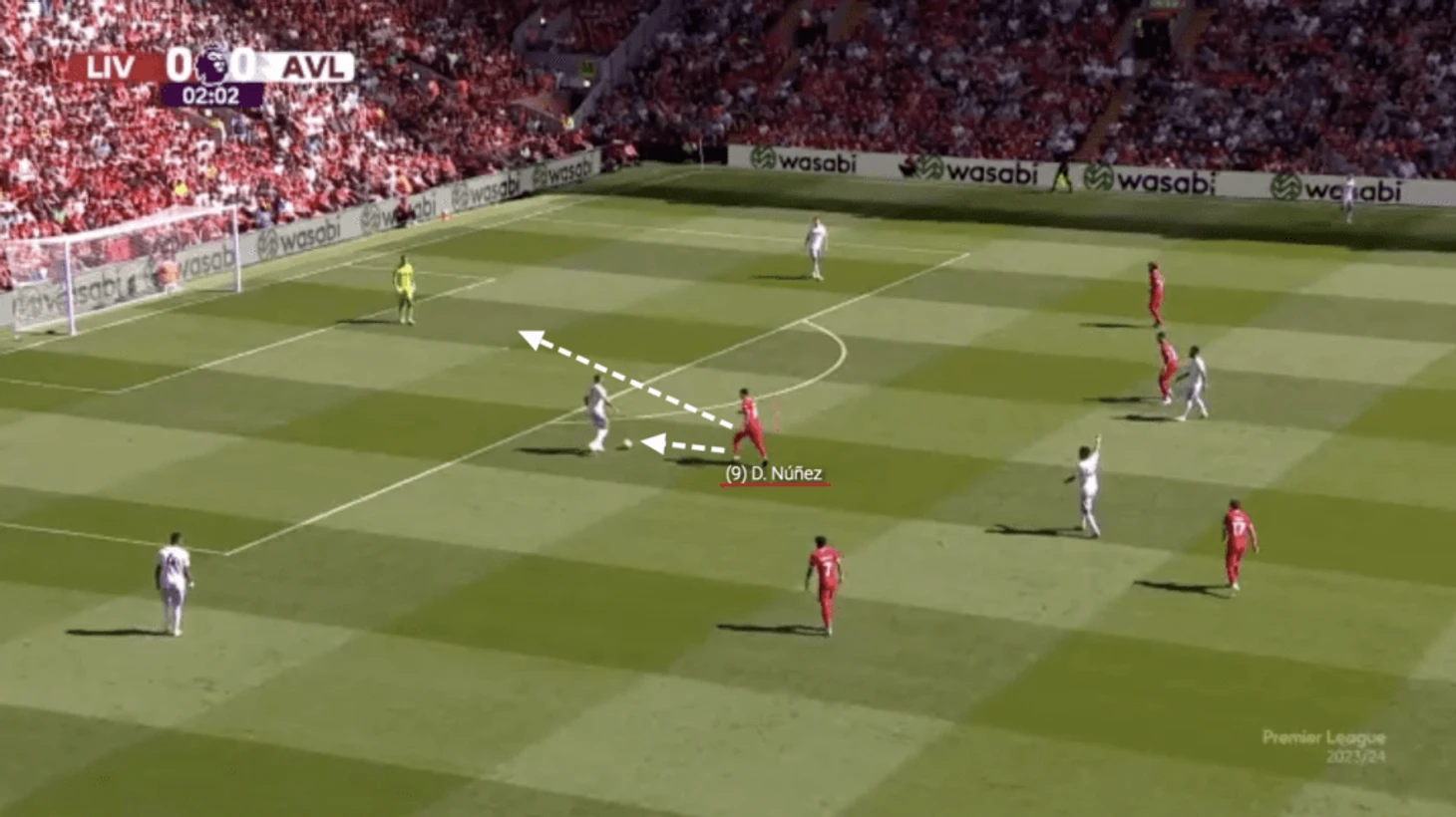 В начале победы над «Астон Виллой» со счетом 3:0, когда Нуньес попал в штангу, перекладину и упустил великолепную возможность с близкого расстояния, он задал тон своим прессингом.