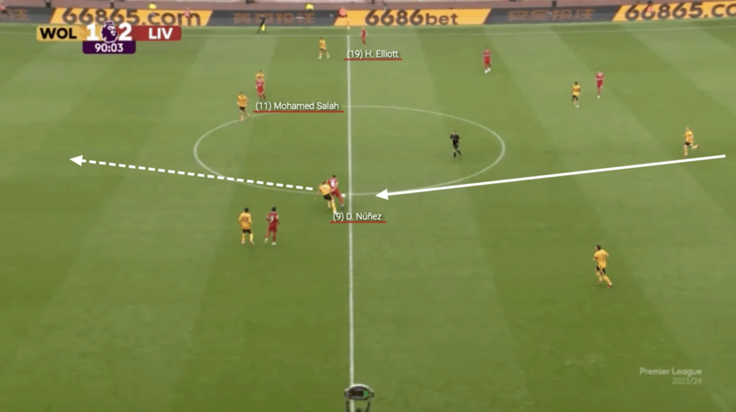 Именно здесь Нуньес продемонстрировал силу и решимость сдержать защитника, а затем сыграть на Эллиотта для подготовки ко второму голу «Ливерпуля», забитому Диасом. Такой тип игры Клопп особенно жалует.