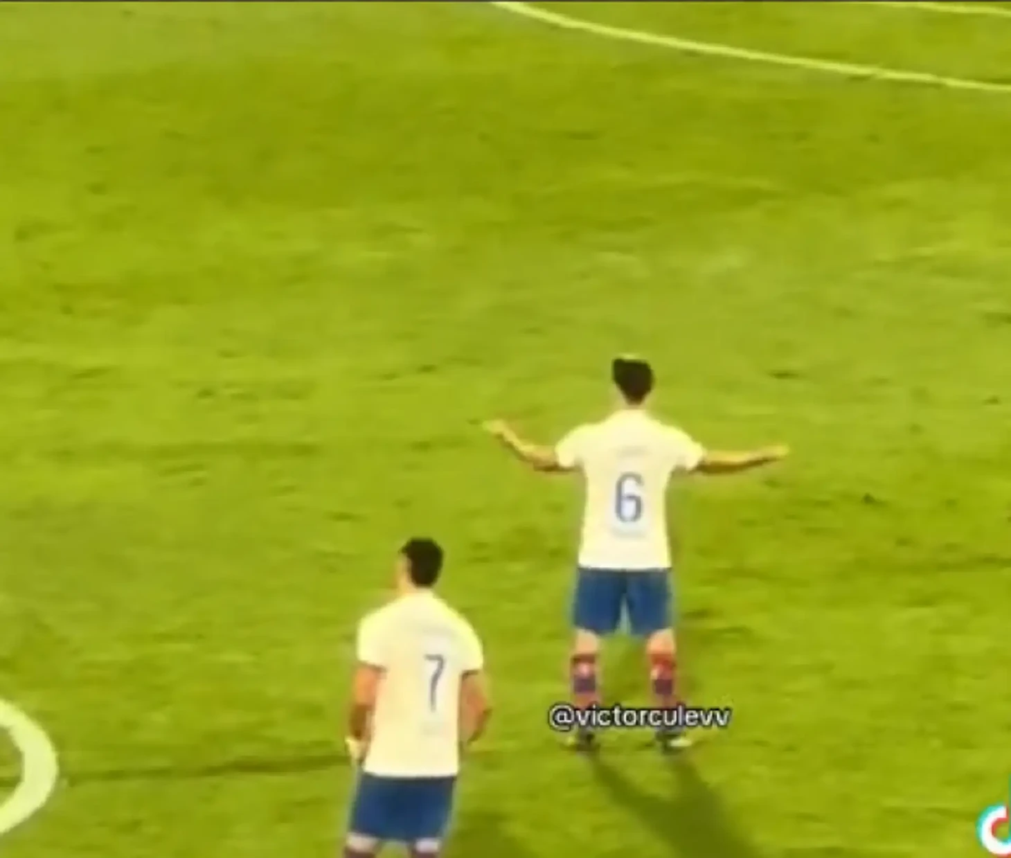 На скриншоте видно, как молодой игрок ругается на одноклубников за то, что они позволили сопернику забить. Затем он со злостью бросает мяч на газон.