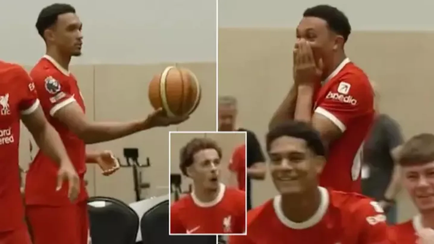 Игроки «Ливерпуля» сегодня участвовали в фотосессии, связанной с баскетболом. Некоторые из них пытались выполнить всякого рода трюки, но больше всех удивил Трент Александер-Арнольд.