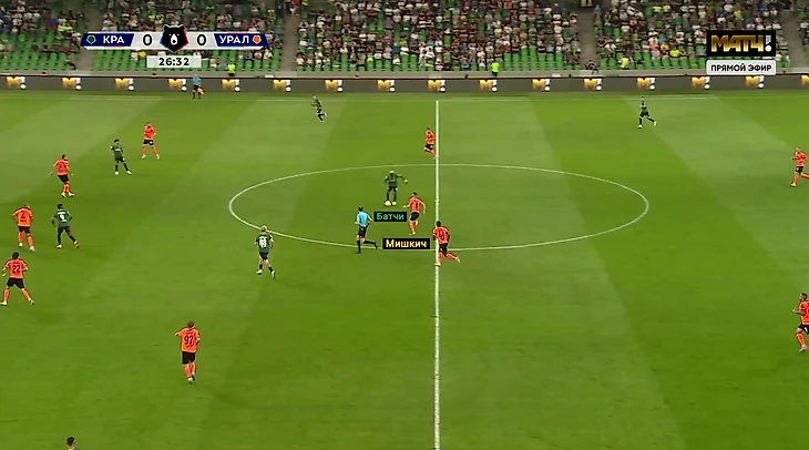 После этого Гончаренко сделал изменения и «Урал» стал смелее оказывать давление в первой линии. За одним из опорников теперь поднимался Мишкич, а Егорычев мог прессинговать одного из центральных защитников.