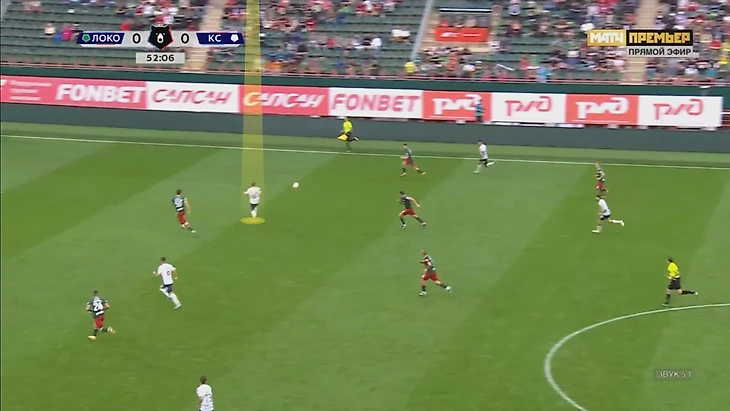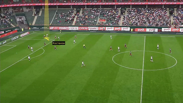 После приема он придержал мяч, увел центрального защитника Погостнова за собой и дождался забегания Костанзы в штрафную. Фернандо не пробил, но получил мяч в опасной зоне.