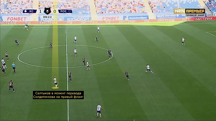 У Салтыкова большой потенциал при включениях вторым темпом. Именно так он забил первый гол в РПЛ. Все началось с диагонали Солдатенкова – в момент передачи Никита находился в центре поля.