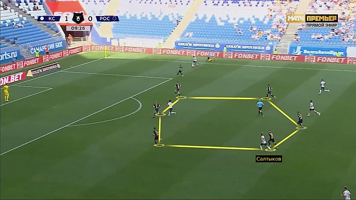 Салтыков без сопротивления принял мяч, а затем убрал Миронова на замахе и хлестко пробил с левой. Похожий эпизод был против «Локо», но тогда удар пришелся в Лантратова.