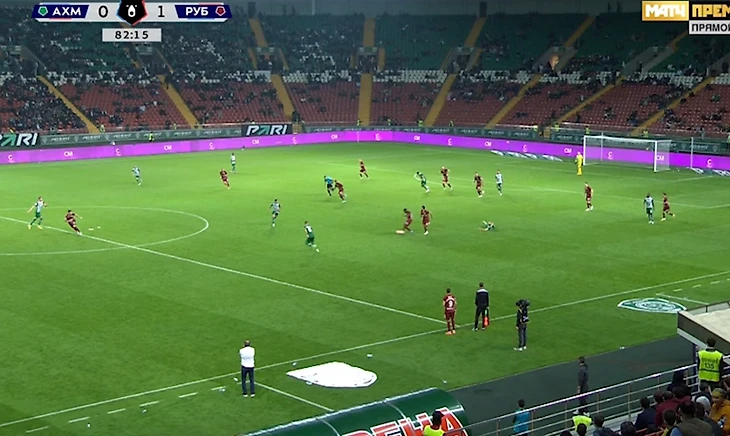 Лишь во втором тайме случилось несколько моментов, которые можно было занести в отчёт из-за ошибок. Любопытно, что сразу два из них - это незасчитанный голы «Рубина», и тут я отдельно остановлюсь на первом из них, который случился на 82-й минуте.