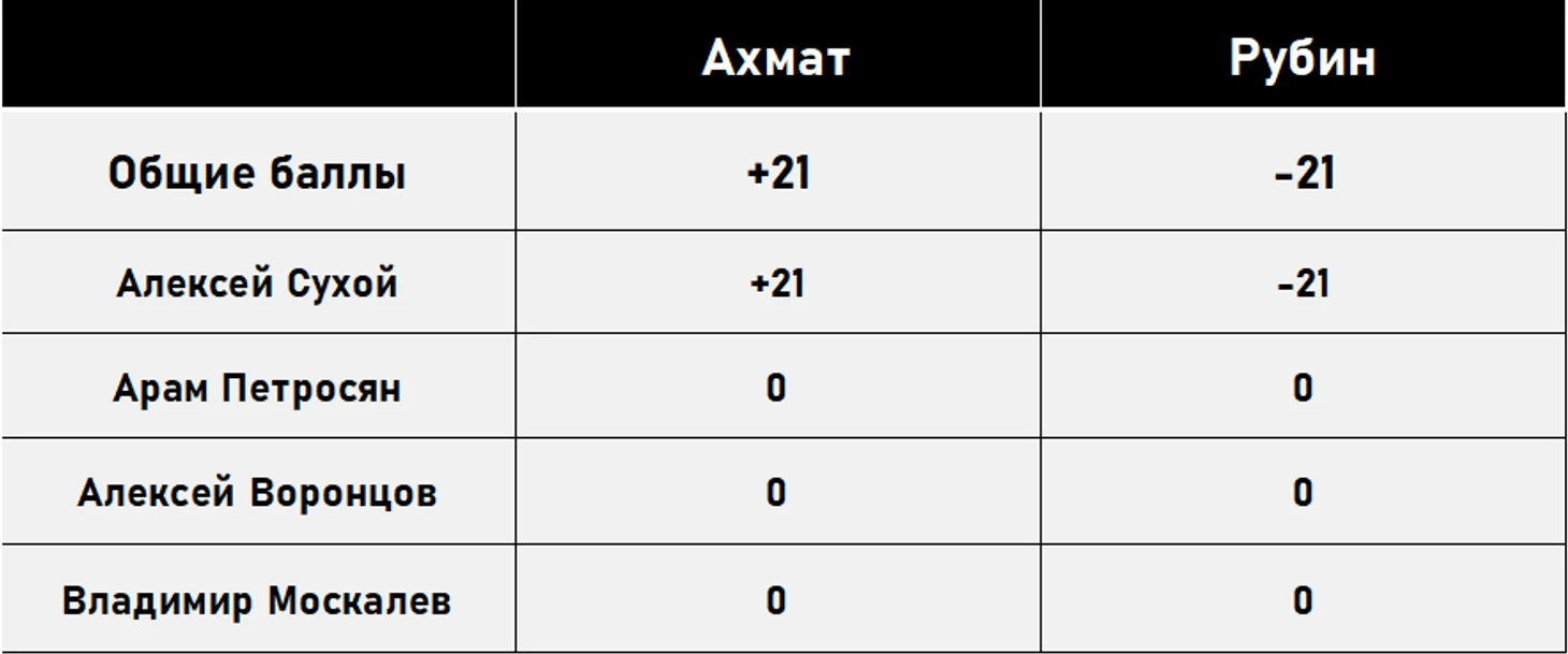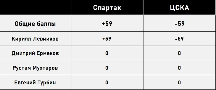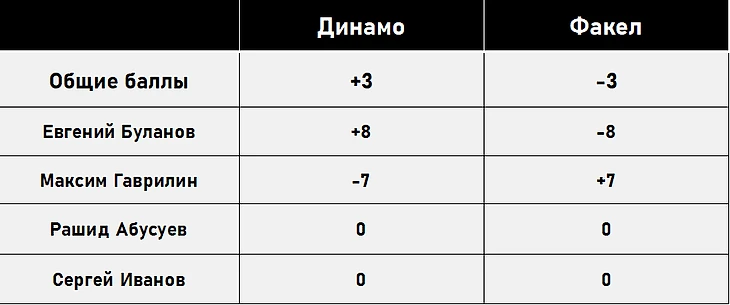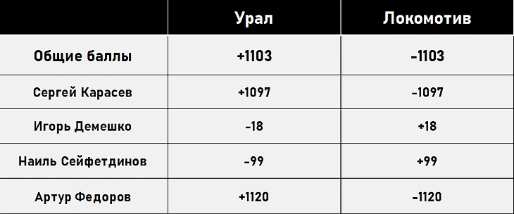 Удивительная равномерность ошибок и спорных решений в обе стороны привела к почти идеальному балансу по баллам между командами, всего плюс-минус три.