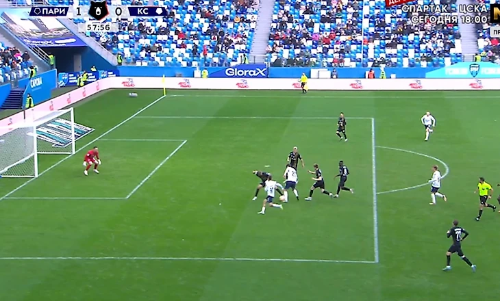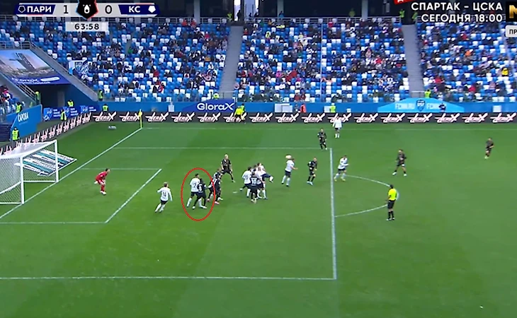 Ну а спустя несколько минут Майга сыграл в своей штрафной площади рукой. Гости могли получить шанс сравнять счёт, но рядом с игроком «Пари НН» находился Констанза, который прямо активно не участвовал в борьбе за мяч, но стоял с Майга вплотную и повлиял на действия соперника, хотя в момент передачи находился в офсайде. Здесь дальний ассистент уже разобрался.
