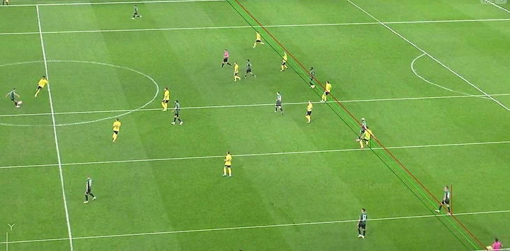 Немаловажным фактором также является возможность оценить эпизод для ВАР. Если судить с того ракурса, что у нас есть, то без линий утверждать о стопроцентом офсайде лично я бы не рискнул, хотя на этой почве даже спорил с одним из пользователей на Sports.ru, который был уверен во «вне игры» и без линий. Тут наверное можно дискутировать, но отмечу свежий пример со спорным офсайдом Изидора, где без линий «вне игры» казалось очевидным, а по итогу все было «на тоненького».