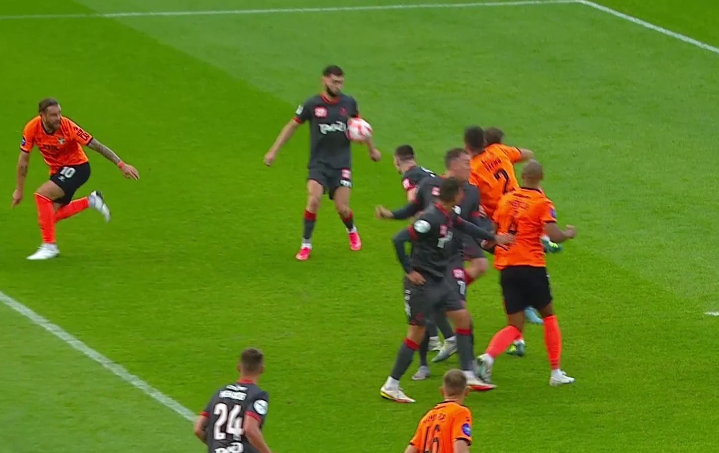 Вот стоп-кадр за полсекунды до попадания мяча в руку - https://ibb.co/d78Lp2N