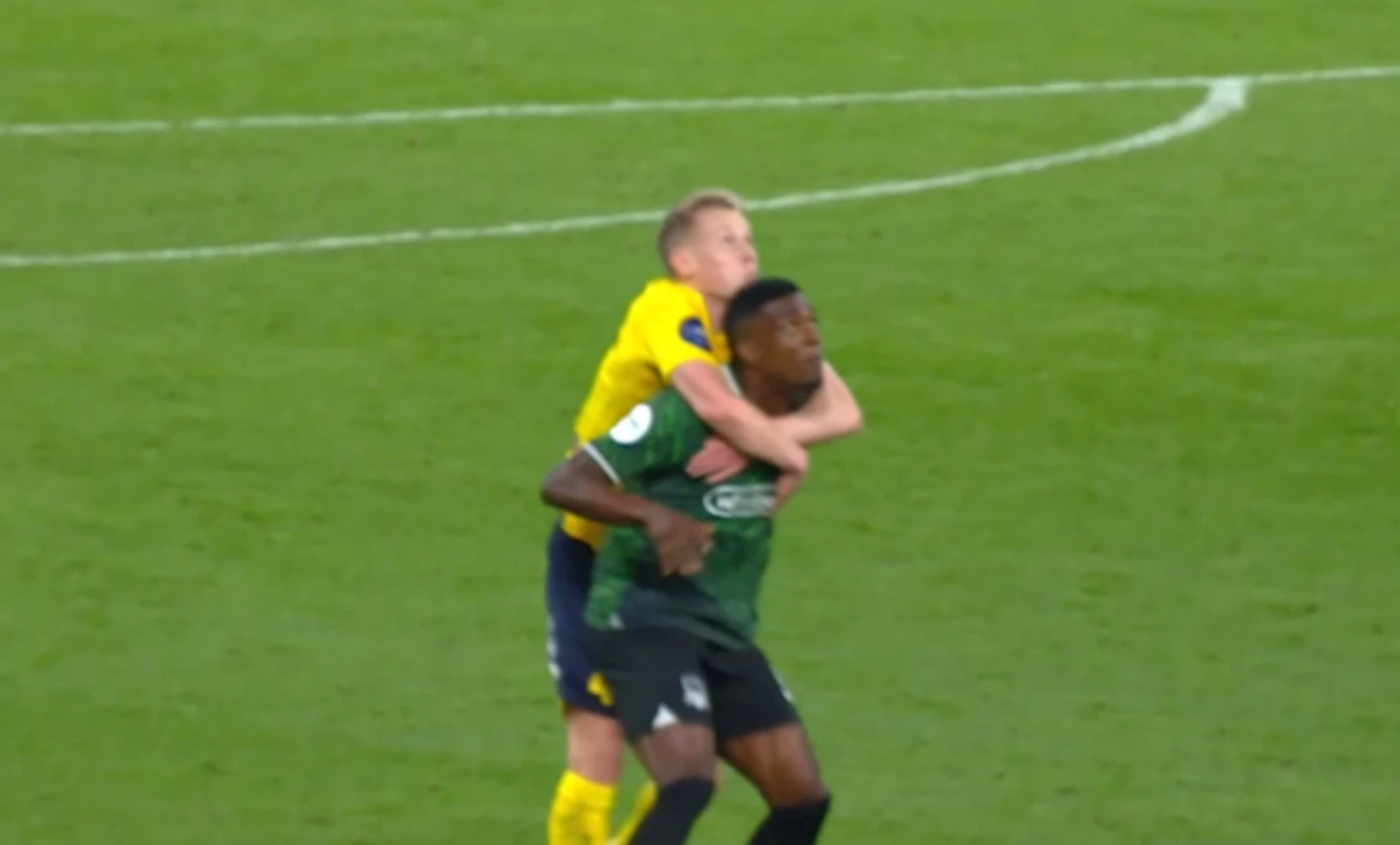 С общего плана момент и правда выглядит подозрительно, но советую обратить внимание на повтор со второго ракурса из ссылки на эпизод, где видна степень контакта.