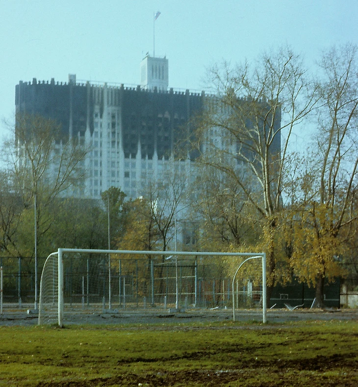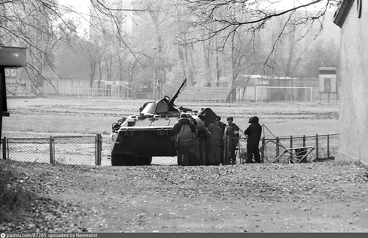 На следующий день Ельцин приказал взять штурмом Дом Советов. Танки расстреляли здание прямо с Новоарбатского моста, а БТРы катались прямо по полю стадиону «Красная Пресня». На турниках, расположенных внутри арены, сквозные дыры от пуль можно было наблюдать еще несколько лет назад.