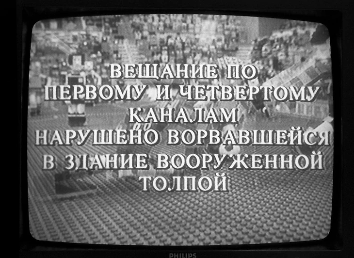 В 19:26, сразу после гола Шмарко, трансляция матча «Ротор» – «Спартак» была прервана, и заметно нервничающий диктор «Останкино» Лев Викторов заявил о вооруженном захвате телецентра.