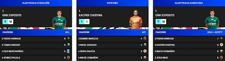Во многом эта серия стала результатом великолепной формы Эрика Экспозито. В десяти турах 27-летний испанец забил восемь мячей и отметился тремя голевыми передачами. Вопрос лишь в том, удастся ли «Шлёнску» удержать Экспозито у себя. В конце сезона у нападающего истекает срок действия нынешнего контракта, а на отсутствие предложений Экспозито не мог жаловаться перед стартом сезона, чего уж говорить после такого успешного старат сезона.