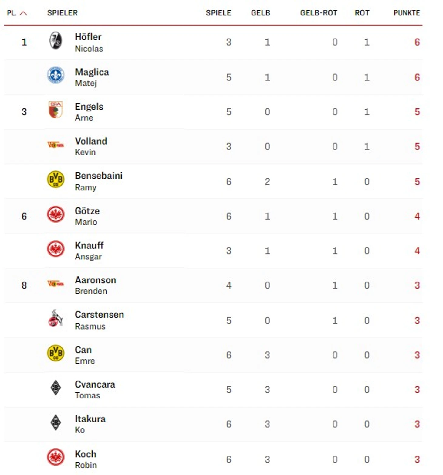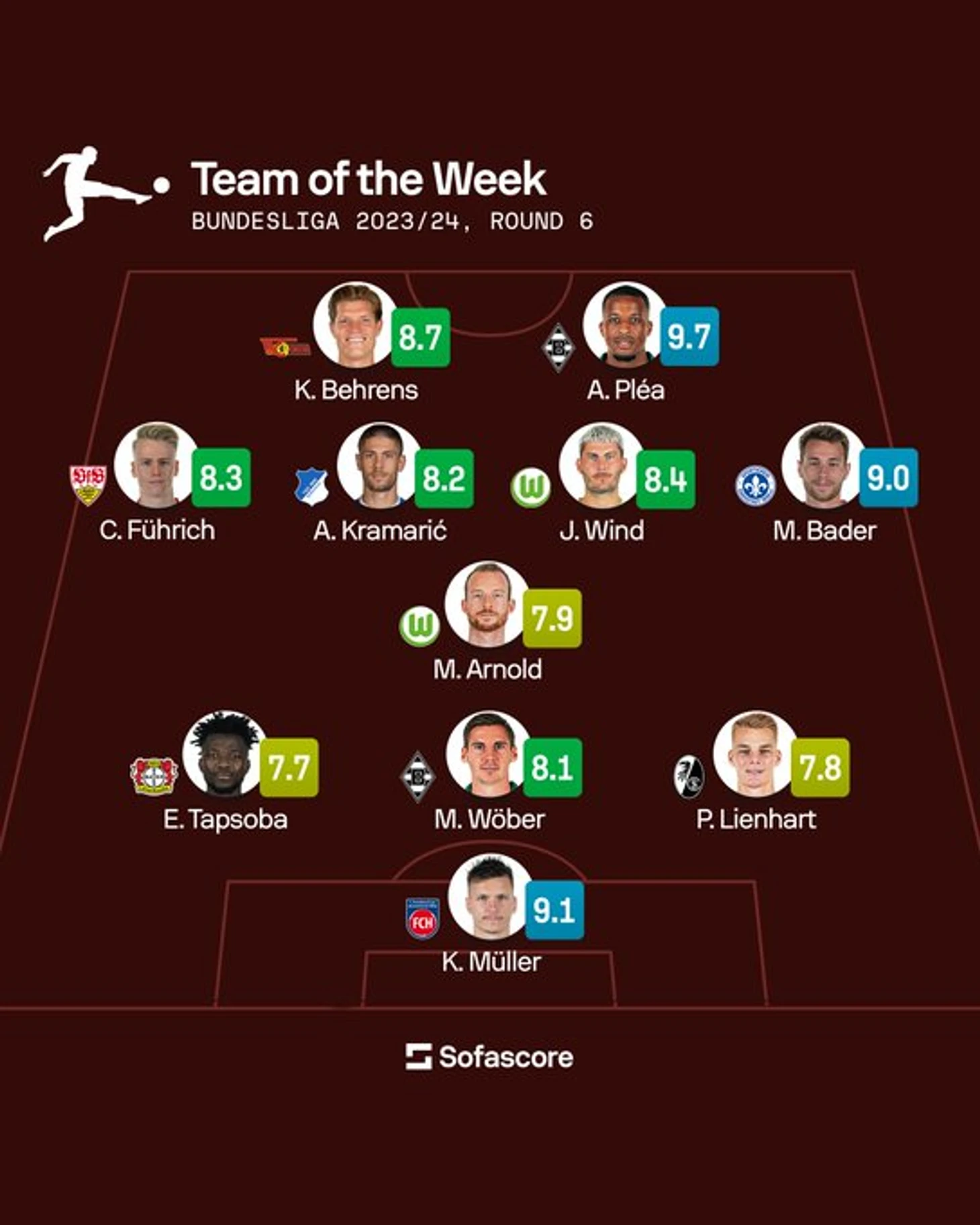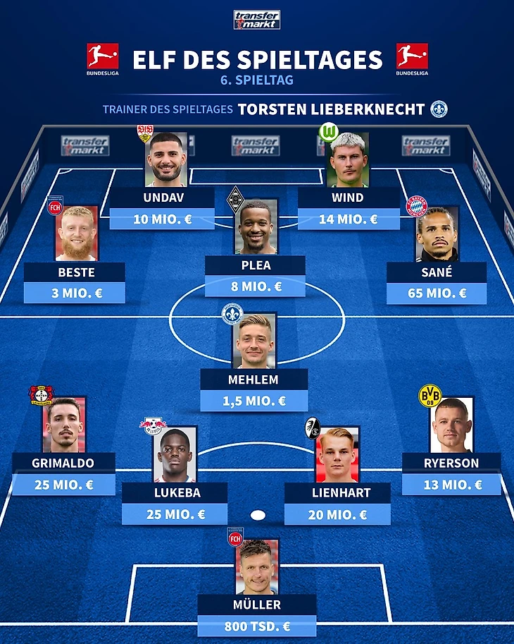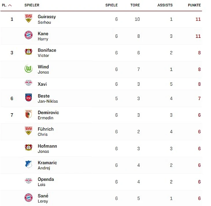 - «Байер» набрал 16 очков в первых 6 матчах Бундеслиги, что является новым клубным рекордом. 20 голов, которые они забили в этом сезоне, также являются беспрецедентными для команды из Северного Рейна-Вестфалии.