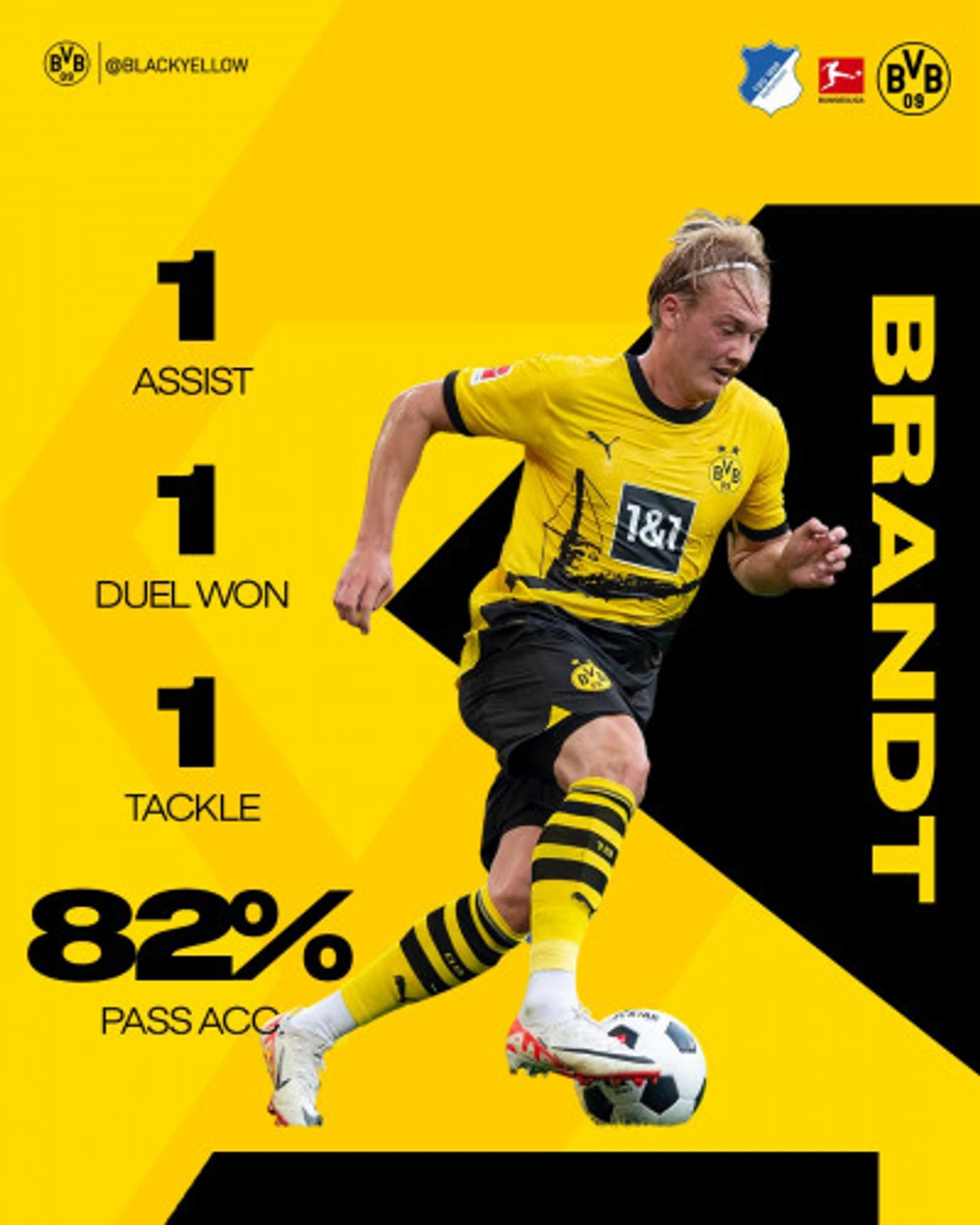 - Ассист Брандта стал для него четвертым в сезоне, что сделало его одним из лучших в этой категории в лиге вместе с игроком «РБ Лейпциг» Хави Симонсом;
