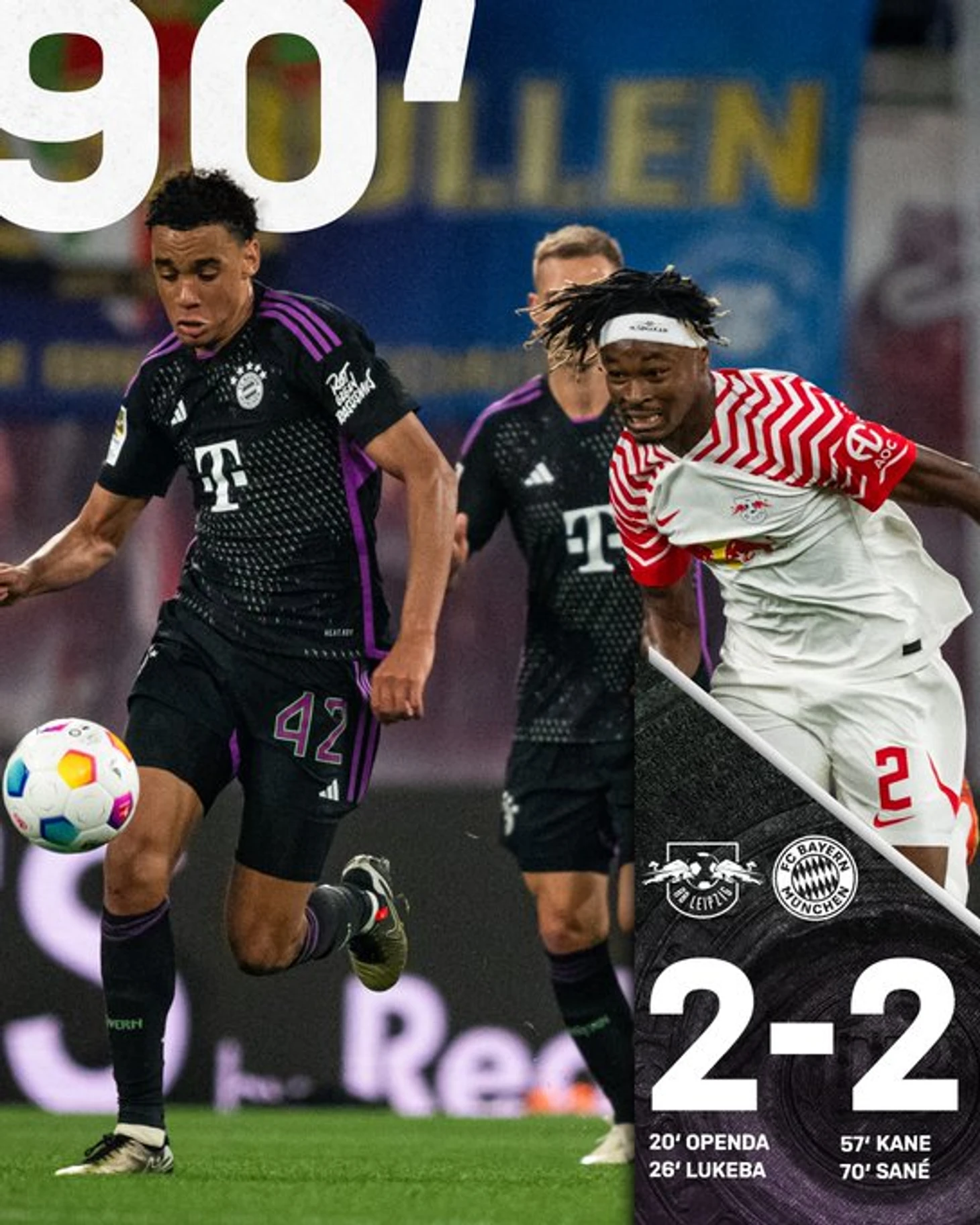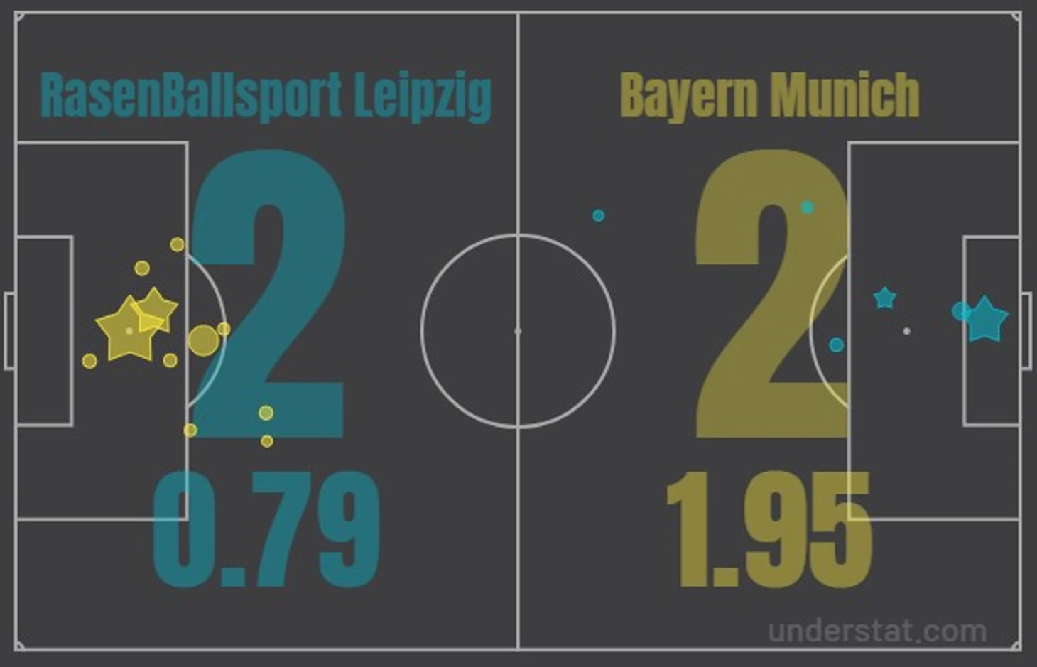 Мюнхенцы, конечно, помнили тот финал и жаждали реванша – но в первом тайме все попахивало опять поражением. Команда Марко Розе действовала очень агрессивно: не боялась прессинговать и идти в атаку. Что в итоге окупилось. На 20-й минуте отличился Лои Опенда, а уже через шесть минут он отдал пас на Кастелло Лукебу. 2:0 – и полное доминирование «Лейпцига» в первые 45 минут.