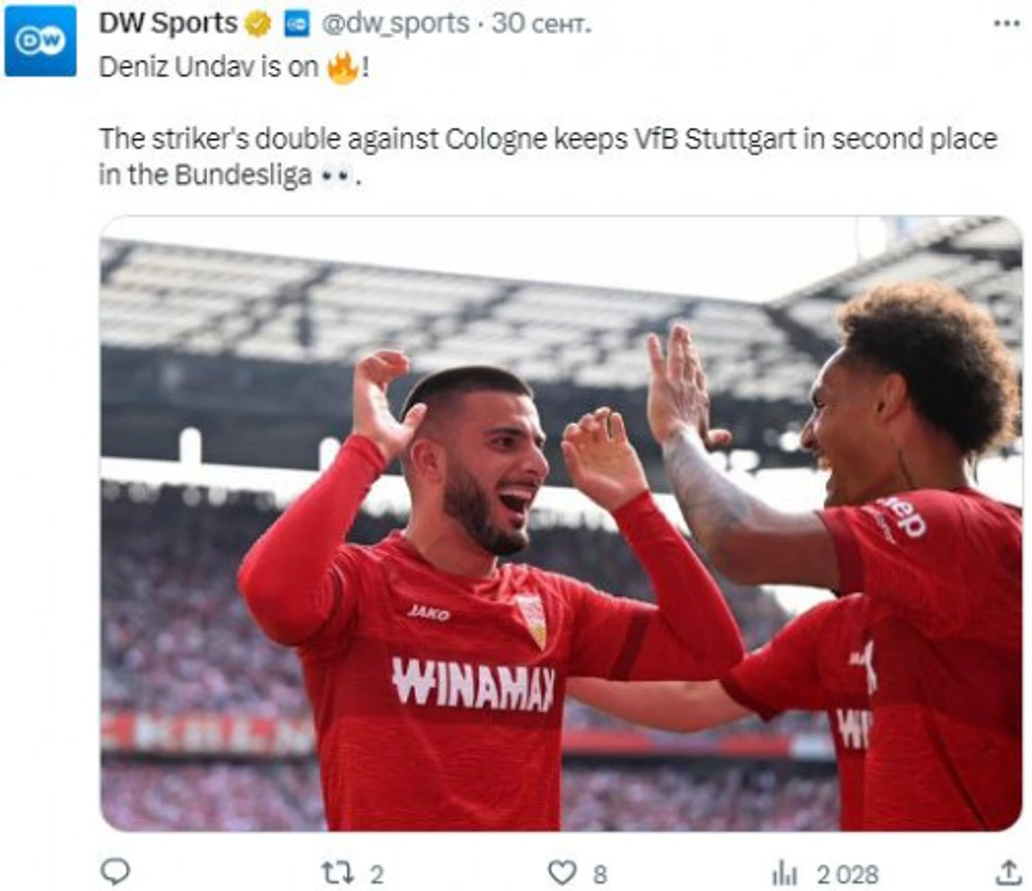 Только во второй половине «Штутгарт» прорвало: Дениз Ундав оформил дубль, который вывел клуб на второе место.