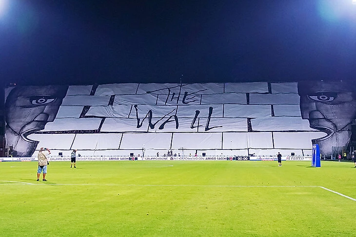 Сначала фанаты «Салернитаны» развернули полотно с надписью The Wall – так назывался альбом Pink Floyd, вышедший в 1979 году.