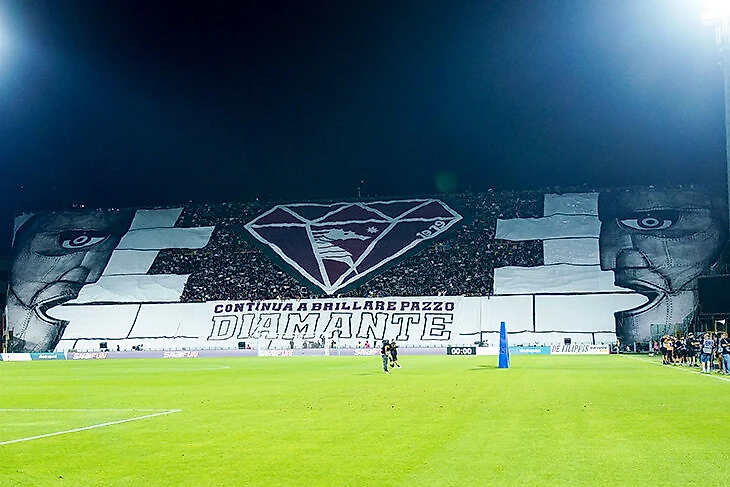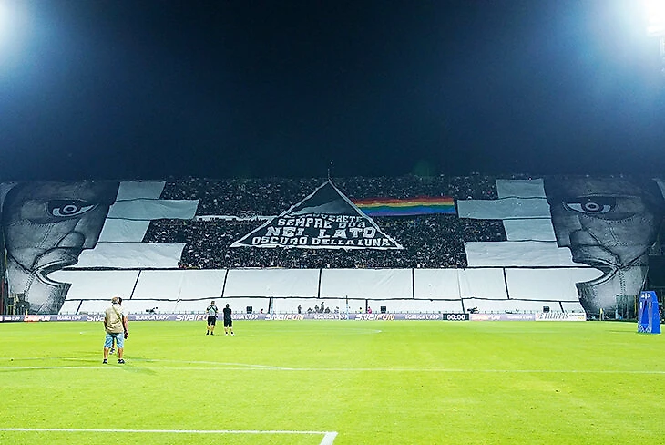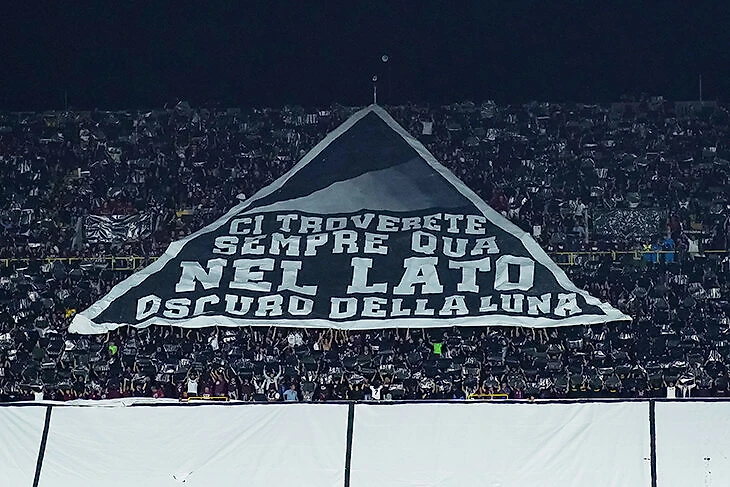 Ультрас «Салернитаны» на домашний матч с «Интером» (0:4) подготовили впечатляющий перфоманс, связанный с культовой группой Pink Floyd. Он был посвящен 50-летию альбома The Dark Side of the Moon.