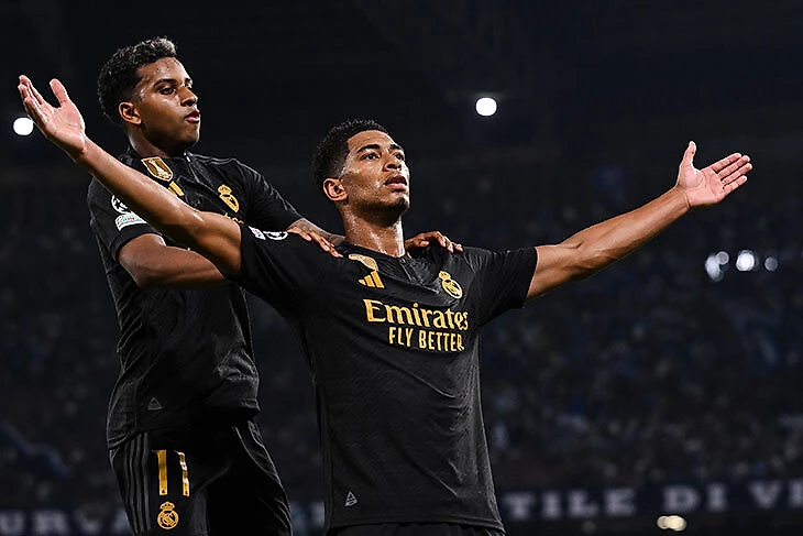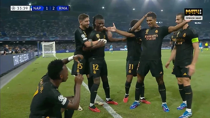 Джуд Беллингем в огне, новый пострадавший – «Наполи». Пробежав полполя, англичанин вывел «Реал» вперед (стало 2:1, закончили 3:2) – и перешел к новой традиции.