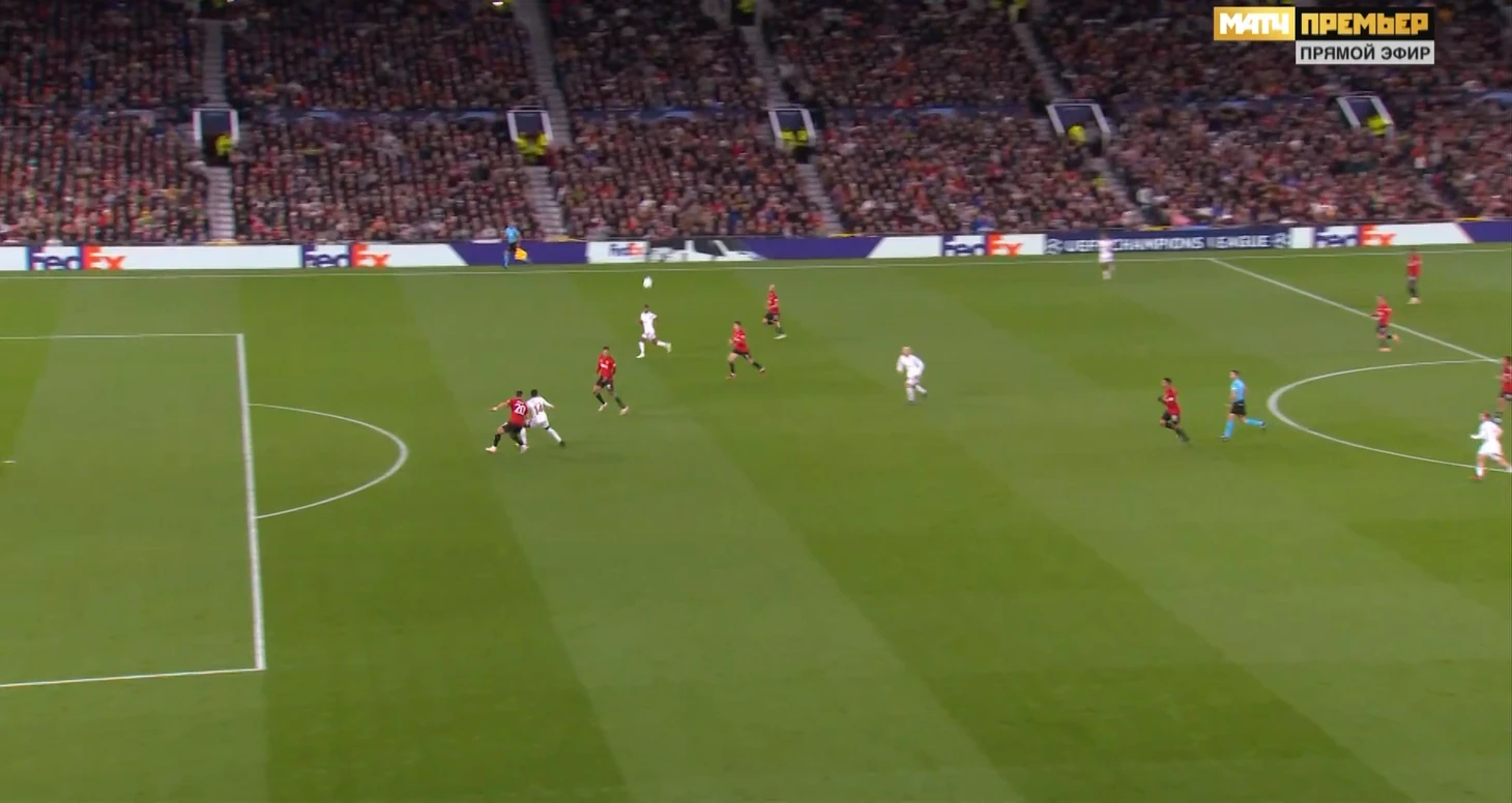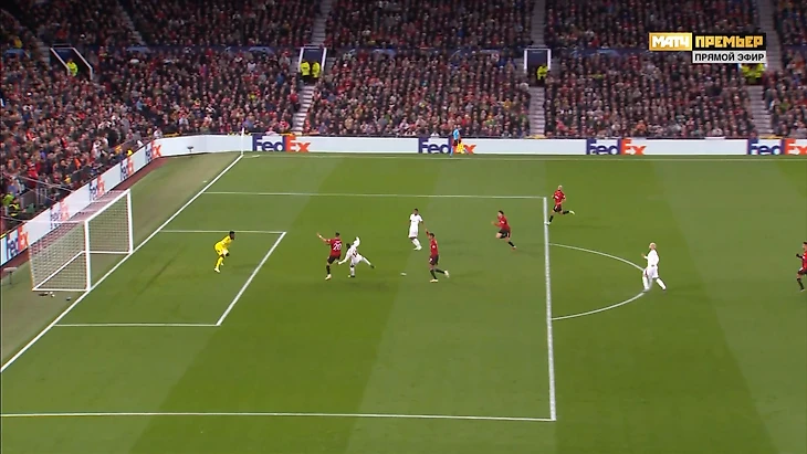 Казалось, длинный пас на Заа не должен создать особых проблем – принять непросто, рядом есть игроки «МЮ».
