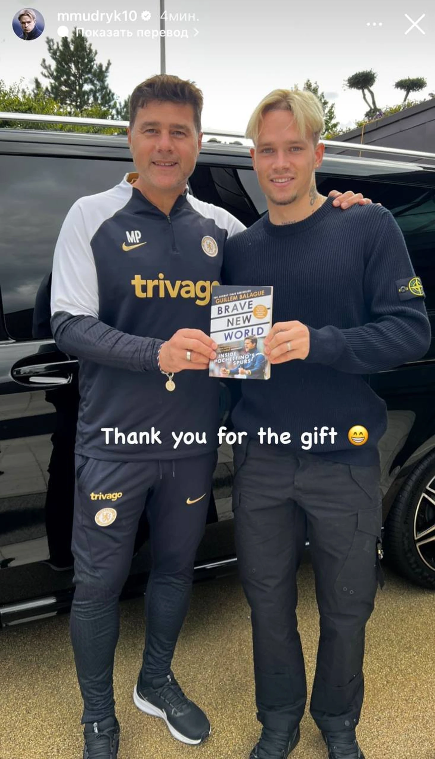 Почеттино подарил Мудрику книгу, которую журналист Гильем Балаге написал про время Поча в «Тоттенхэме». Михаил поблагодарил тренера за подарок в сторис.