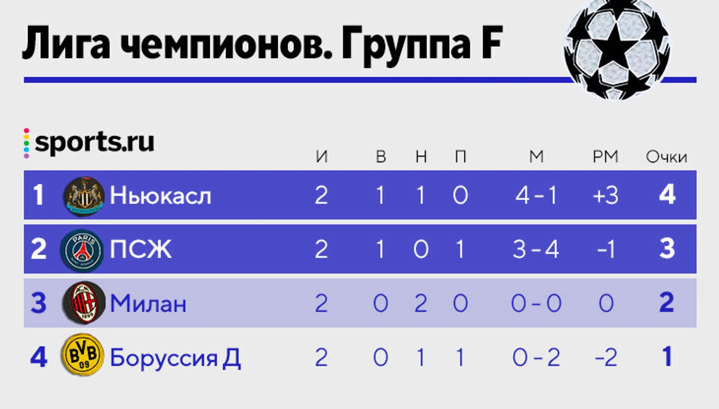 В группе, где любой матч – из центральных в туре, шоу на этот раз с участием «Ньюкасла». В первом туре у англичан с «Миланом» были нестыдные, но 0:0, а тут содержательный вынос «ПСЖ».