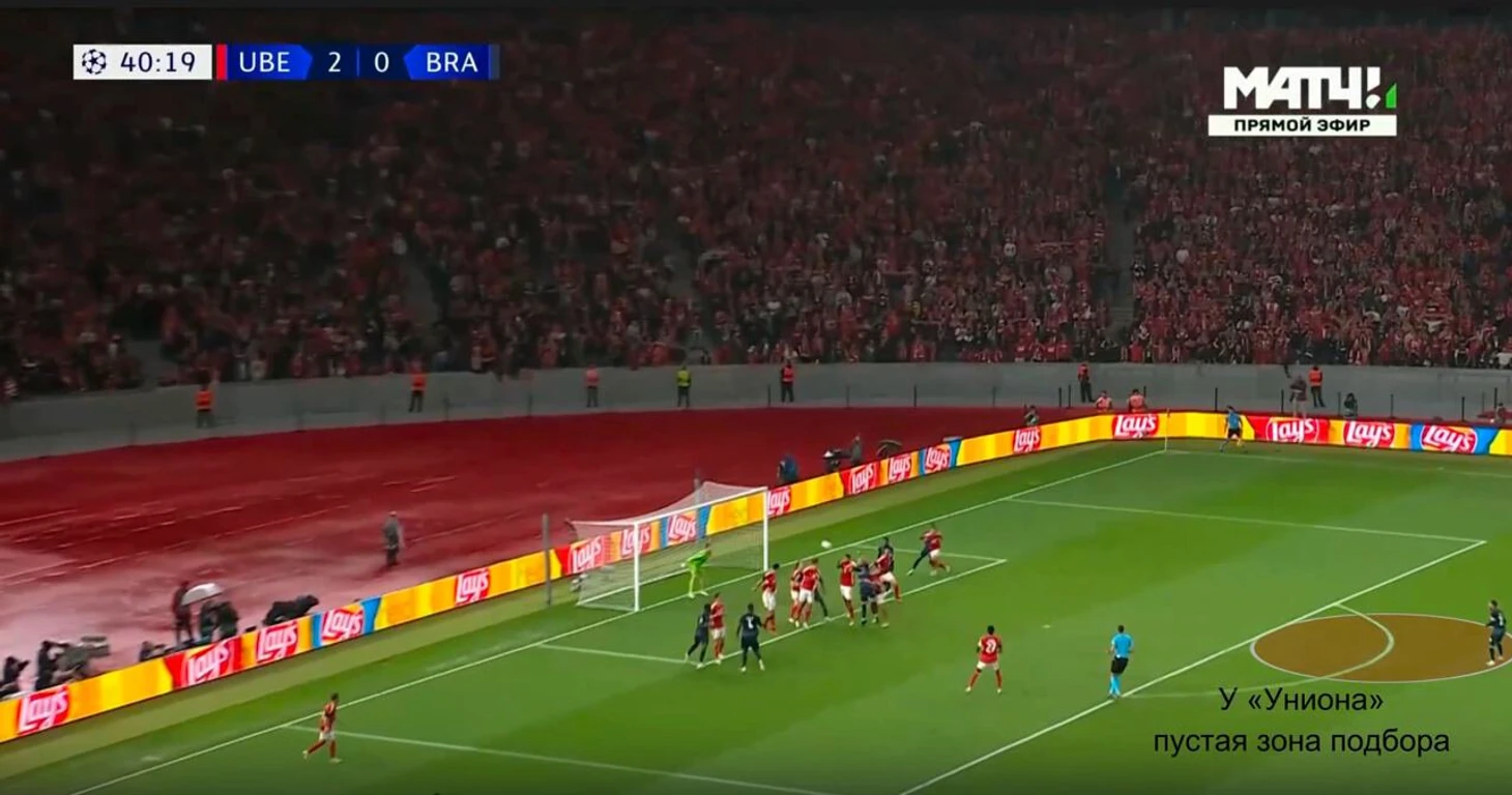 Два гола от «Браги» «Унион» пропустил после угловых – вследствие ударов из зоны подбора.