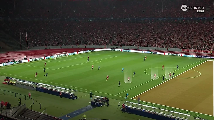 За 45 минут поняли, что «Бенфика» ни на что не способна в позиционных атаках, и во втором тайме осмелели (озверели?). Теперь постоянное давление, в котором участвует вся команда. Тут сразу восемь игроков на чужой половине: