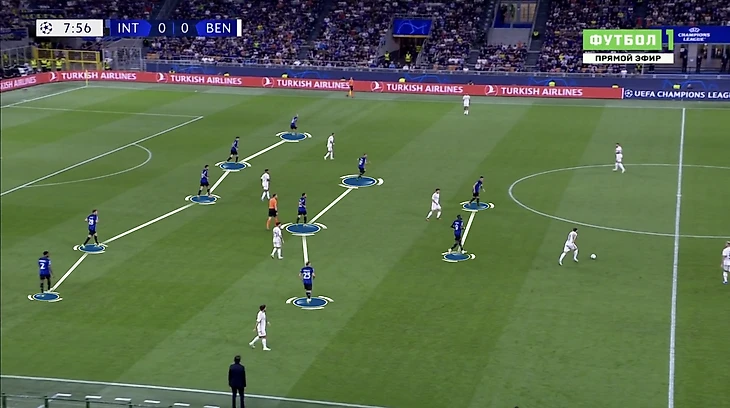Здорово описывает перемены процент действий на трети «Бенфики». В первом тайме – всего 21%. Во втором – 37%. В первые полчаса второго тайма (уместился гол и основные моменты) – вообще 43%. После матча Индзаги нахваливал игроков в первую очередь за интенсивность, которую показали после перерыва.