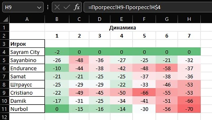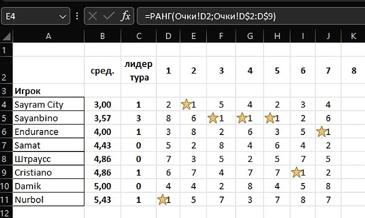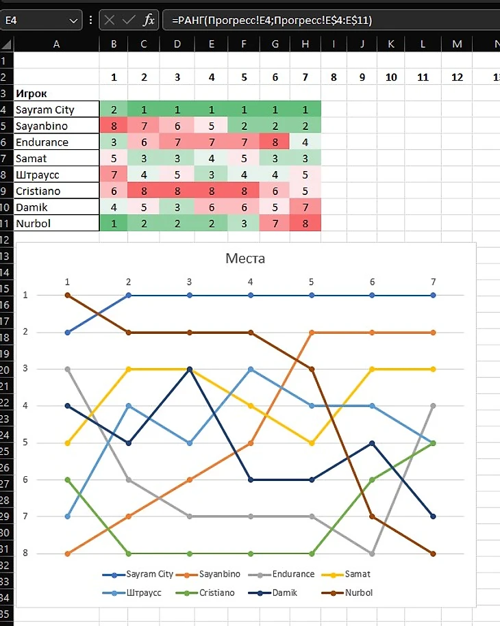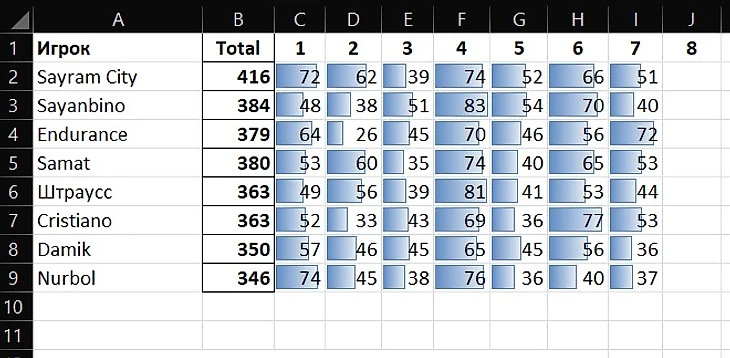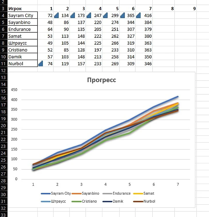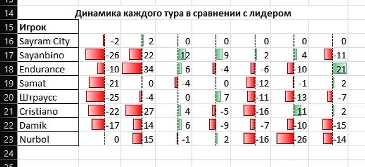 С помощью не хитрого подсчета очков каждого тура, мы смогли нарисовать следующее: