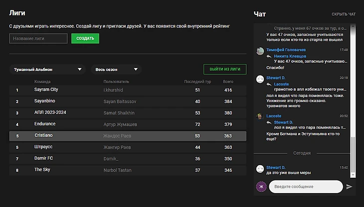 Возьмем для примера Fantasy АПЛ. В начале сезона мы создали группу с названием «Туманный Альбион» и начали нашу ежегодную гонку: кто из нас в этот раз будет наиболее успешным и получит звание лучшего игрока, уникального собирателя команды :)