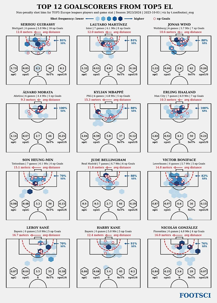 Лучшие бомбардиры Европы прямо сейчас. Карта ударов, статистика голов и xG