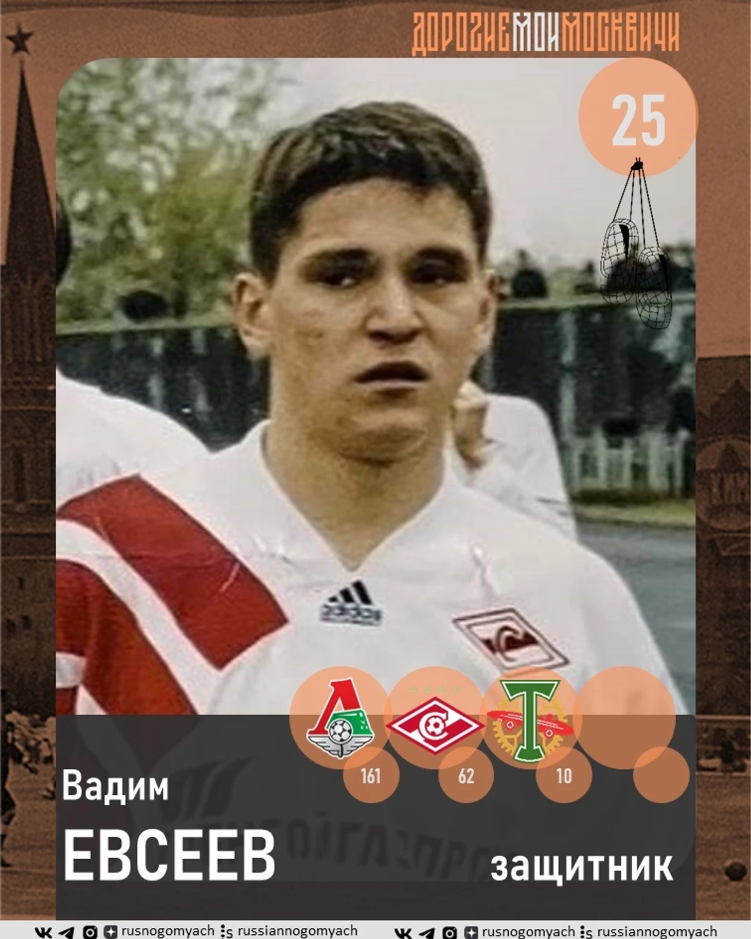 Вадим Валентинович родился в Мытищах, почти в Москве. Начал заниматься в Динамо, но, не попав в состав на международный турнир, перешел в стан красно-зеленых. Профессиональную карьеру начал на родине - в Спартаке Мытищи, а потом оказался в московском, дебютировав за основу в 1996 в ЛЧ с Нантом. В 1998 по-братски поиграл в Торпедо, вернувшись в Спартак, а потом на излете века 20-го отправился в Черкизово, где провел 7 лет. А потом с ним случился Бышовец. В итоге пришлось опять присоединится к автозаводцам опять на сезон, но уже в первой лиге. После Торпедо с Казанского вокзала убудет в Раменское на 3 сезона. Потом будет Беларусь и Тула, а заканчивает Вадим Валентинович снова в Мытищах и сразу для себя открывает мир тренерства, но пока в Москве потренировать не удалось. Но какие его годы!