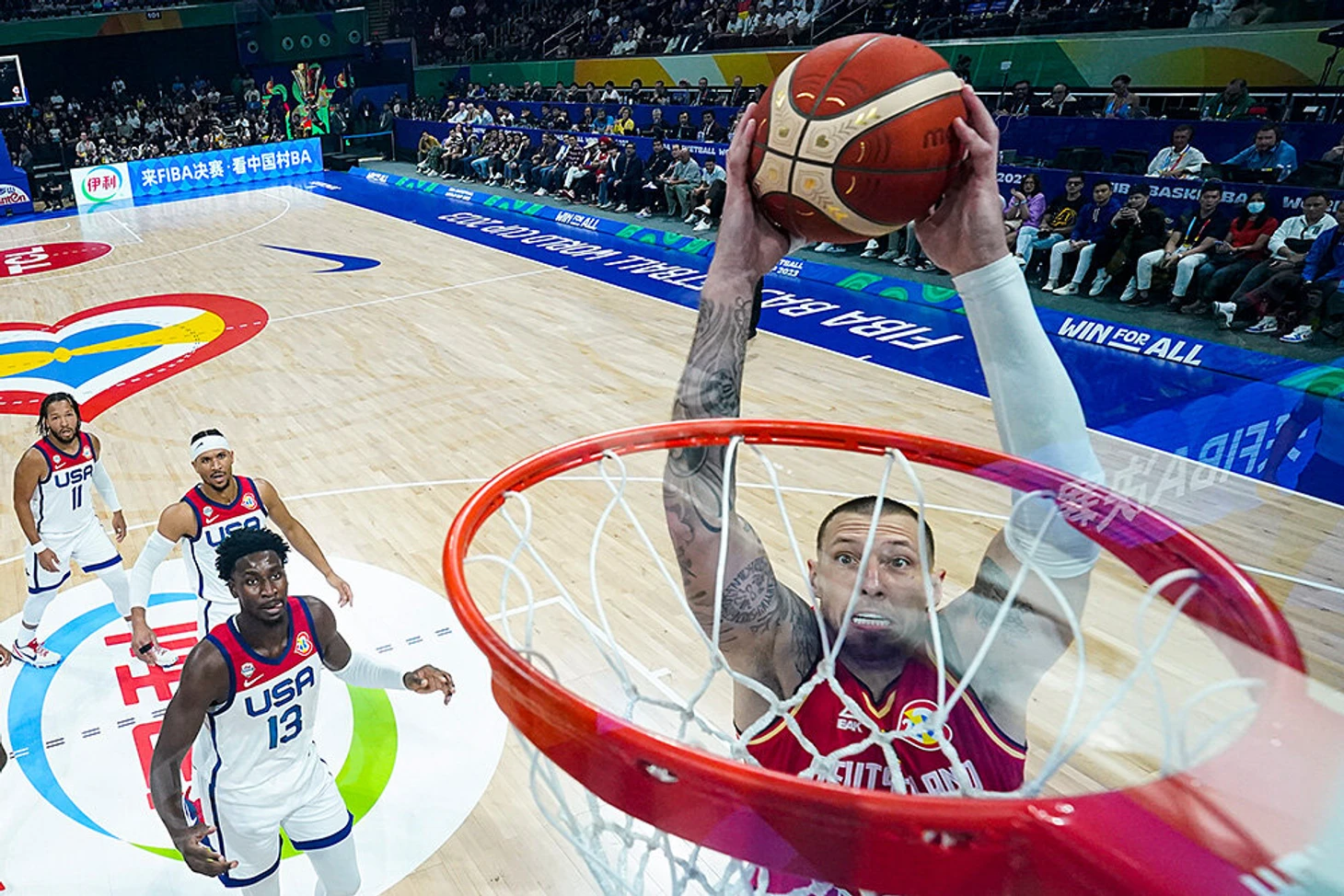 8 сентября. Звезды сборной США наблюдают, как Даниэль Тайс и сборная Германии выбивают их с ЧМ по баскетболу.