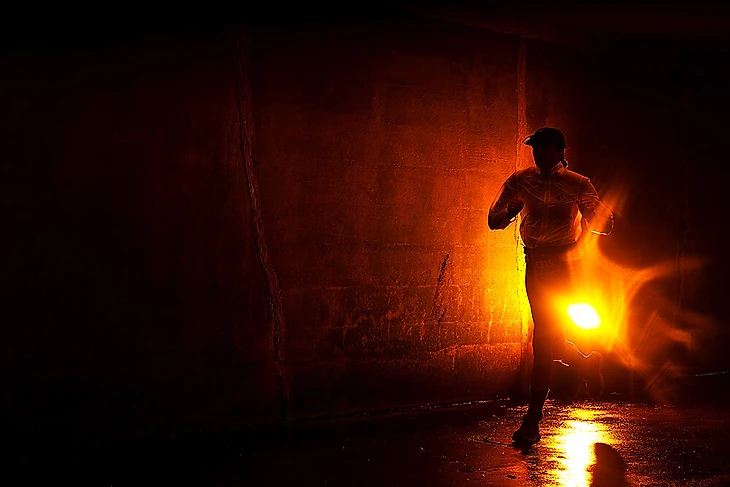 23 сентября. Одинокий фонарь подсвечивает бегущего во тьме человека. Это участники Ironman добежали до Нью-Йорка.