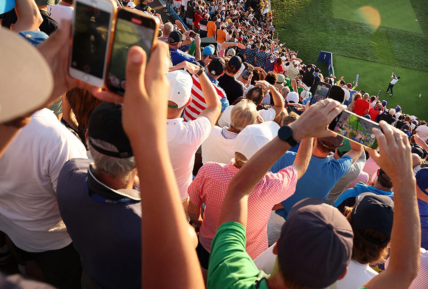 30 сентября. Начинали с двух фотографов «Тоттенхэма», а закончим видом на Кубок Райдера в Риме, турнир по гольфу между командами Европы и США, которые один из зрителей снимает сразу на два смартфона.