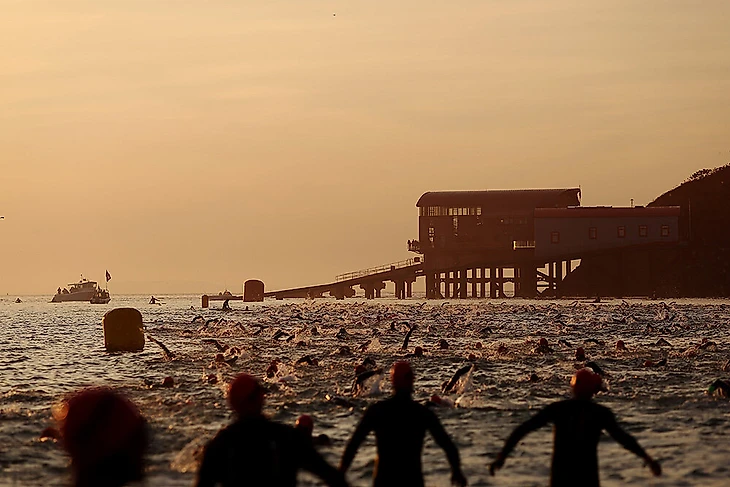 3 сентября. Здесь тоже прекрасный вид. В море не птицы, а участники Ironman в Уэльсе.