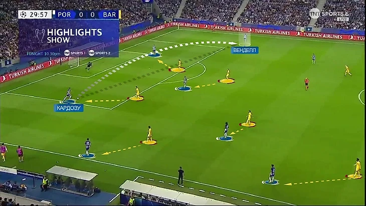 При игре без мяча «Барса» была чем-то похожа на «Порту» – тоже использовали высокий зонный прессинг, только на более постоянной основе: