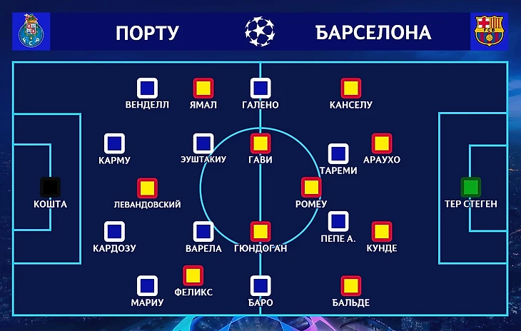 Пепе и Маркано – самые значимые потери «Порту». Также с «Барсой» не смогли сыграть Зайду и Верон. Серджиу Консейсау полностью повторил стартовый состав с матча с «Бенфикой». Тренер «драконов» на предматчевой пресс-конференции не исключал возможность игры с пятью защитниками, но этого в итоге не случилось. Всё предельно предсказуемо.