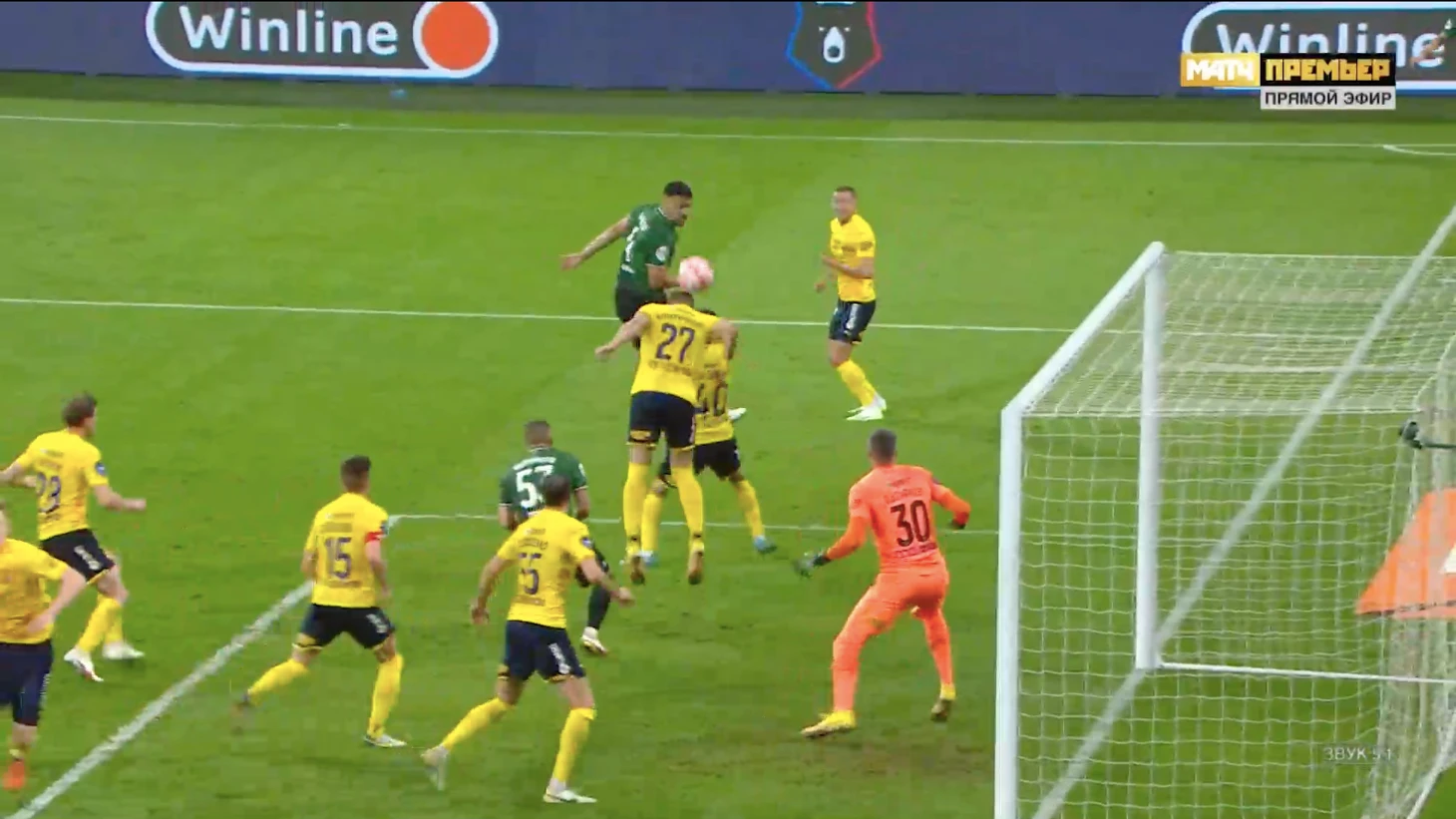 В начале второй половины дела у лидера РПЛ чуть наладились: Сперцян пробил в нижний угол и сократил отставание.